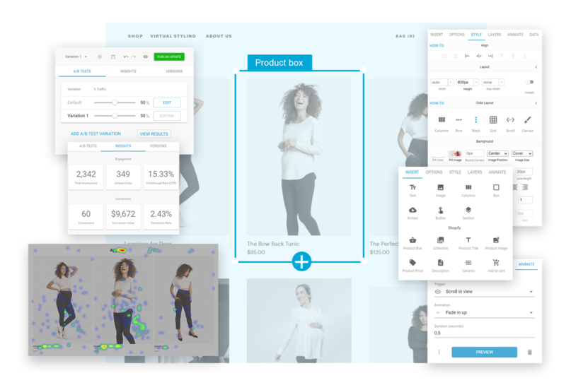 Drag-and-drop it all, from text, images, and videos to products, collections, and add-to-carts.